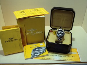 The watch comes with the original Breitling box with outer, papers dated 2004, complete documented service history, chronometer papers, instruction booklets and swing tickets and has a 1-year warranty from ourselves.