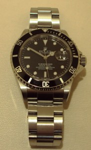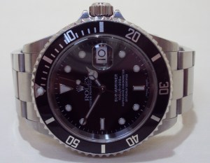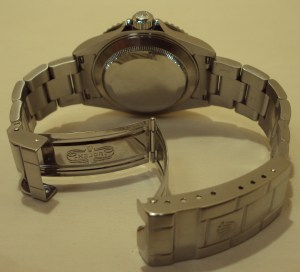 The Submariner Date is a watch whose elegance belies its technical capabilities as a divers watch. The trip lock crown, a triple safety device, is protected against accidents by seamless shoulders cut in solid metal. The date changes at midnight and can be rapidly adjusted. The graduated Oyster bracelet has extension links so that it can be worn over a light diving suit and is fastened by a Fliplock safety clasp. A tough sapphire crystal remains scratch resistant under the most arduous conditions. The watch is waterproof to a depth of 300m (1000 feet). The revolving bezel incorporates a ratchet and can only be turned anti clockwise for reliable checking of decompression times. Truly a handsome watch, practical stylish for every occasion.
