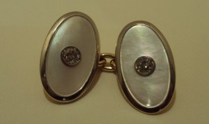 Pre-Owned 15ct Gold Mother of Pearl and Diamond Cufflinks