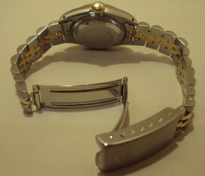 Pre-Owned Rolex Ladies Datejust Oyster Perpetual 18ct Yellow Gold and Stainless Steel Wristwatch in Excellent Condition with only very minor marks that are hardly noticeable. Model 69173. Boxed with Papers – 1993