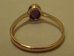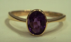 22ct yellow gold single stone amethyst ring set in a rubbed edge setting