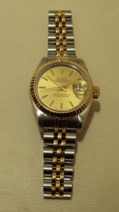 Pre-Owned Rolex Ladies Datejust Oyster Perpetual 18ct Yellow Gold and Stainless Steel Wristwatch in Very Good Condition with only very minor marks. Model 69173. Boxed with Papers – 1988.