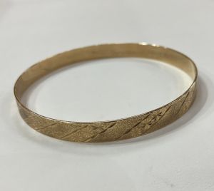 9ct yellow gold engraved round bangle -solid, with a satin and polished pattern