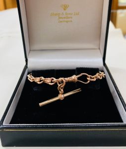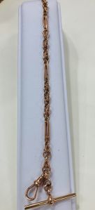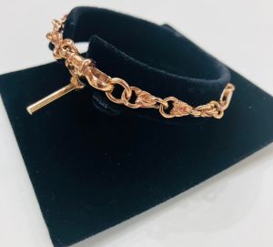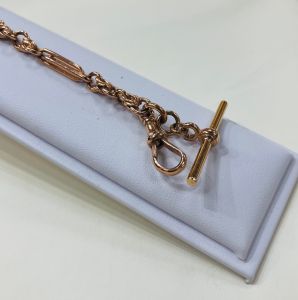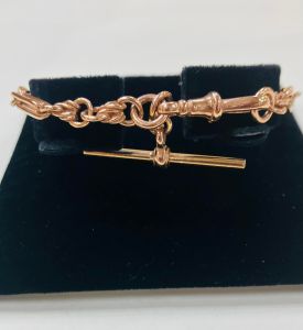 9ct Rose Gold Knot and Trombone link Albert style bracelet with t-bar and swivel fastener.