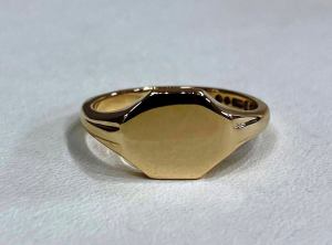 9ct yellow gold ladies octagonal shaped signet ring free from any engraved design