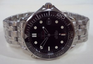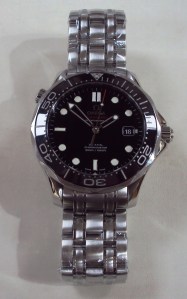 The Seamaster collection to which this watch belongs pays tribute to the maritime heritage of the Omega brand. The watch is waterproof to a depth of 300m (1000 feet), has a helium escape valve for long periods spent underwater and a revolving bezel that can only rotate anti-clockwise for reliable checking of dive and decompression times. The watch has a screw-in crown that screws directly into the case, providing reliable water resistance that a divers watch needs. The watch has a domed scratch-resistant crystal with an anti-reflective treatment on both sides, a highly durable cover over the dial. The solid link bracelet has a push button release fold over clasp which has a divers extension to the bracelet, useful when wearing over a wetsuit. This watch is classified as a chronometer, a watch whose movement has obtained an official rate certificate from the COSC (Official Swiss Chronometer Testing Institute) after having passed precision tests in different positions and at different temperatures. These tests are conducted over a 15-day period.