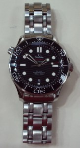 This Omega Seamaster Diver 300 Co-Axial features an black unidirectional rotating ceramic bezel, black wave dial with luminous dots and batons and a date indicator display at the 6 o’clock position. This is the 210.30.42.20.01.001 model with box and papers dated August 2020.