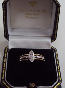 - Diamonds 0.25 carats spread over three stones