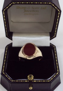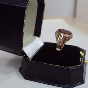 9ct yellow gold gents oval shaped signet ring set with carnelian