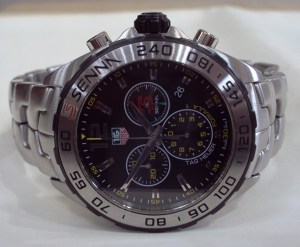 TAG Heuer and Ayrton Senna’s partnership began in 1988 and after the Formula 1 drivers tragic death in 1994 the Senna partnership continued to work with TAG Heuer to create a number of limited edition models. The trademark Senna S is visible on this model on the dial and the bezel and the case back has the chequered flag design synonymous with F1.