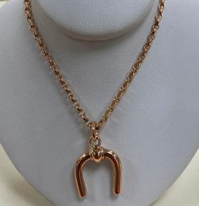 9ct rose gold solid horse shoe charm and a 9ct rose gold solid oval belcher link 457mm (18”) chain