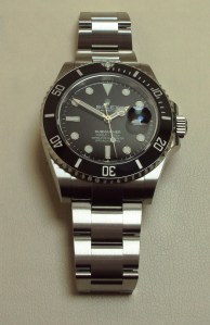 The Submariner Date is a watch whose elegance belies its technical capabilities as a divers watch. The trip lock screw-down crown, a triple safety device, is protected against accidents by seamless shoulders cut in solid metal. The date changes at midnight and can be rapidly adjusted. The flat three piece solid link stainless steel Oystersteel bracelet has the Rolex Glidelock extension system and is fastened with a folding Oysterlock safety clasp. A tough sapphire crystal remains scratch resistant under the most arduous conditions. The watch is waterproof to a depth of 300m (1000 feet). The rotatable ceramic bezel incorporates a ratchet and can only be turned anti clockwise for reliable checking of dive decompression times. The ceramic bezel is virtually scratchproof as it is made from corrosion resistant hard ceramic. A handsome watch for every occasion.