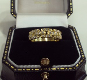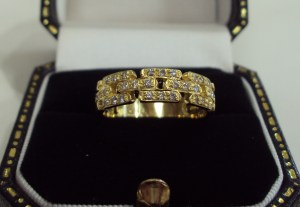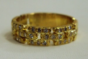 18ct yellow gold ring with approximately 0.27 carats of diamonds set into a three row brick link design