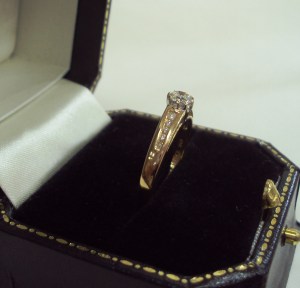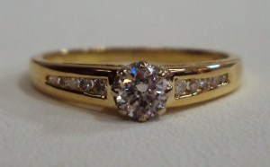 18ct yellow gold diamond solitaire 0.33ct ring with ten graduated diamonds in channel set shoulders