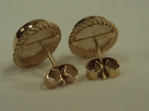 9ct yellow gold Opal earrings with a milgrain edge with 9ct yellow gold stems and butterfly backs.