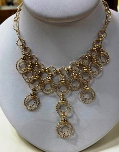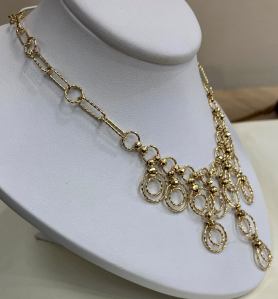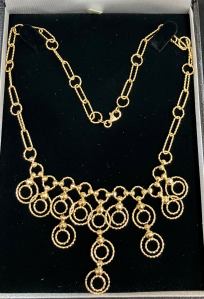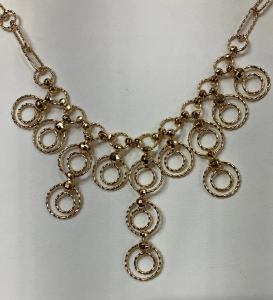 14ct yellow gold solid twisted wire fancy interlocking circle and bead design necklace 410mm (16”)