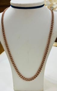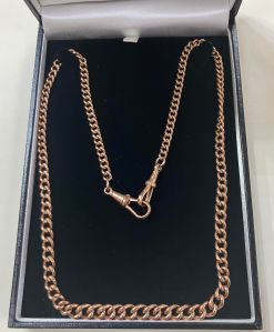 This rose gold graduated curb link Albert style necklace fastens with two swivel clasps that are in keeping with the style of the necklace and are very secure. Not only is the chain graduated but it is stamped on every link as a sign of quality. The chain measures approximately 18 inches/560mm and comes displayed in one of our lovely display boxes.