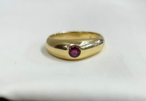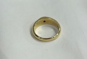 18ct solid yellow gold solitaire ring with a ruby invisibly set into the head