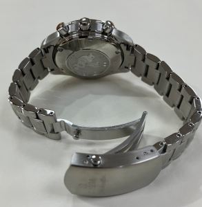 The 40mm stainless steel cases houses an Omega 1164 calibre self-winding automatic chronograph chronometer movement with a rhodium plated finish. This model has a power reserve of 44 hours. It is in full working order.