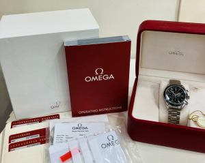 The watch comes with the original Omega box and outer, Omega instruction booklet, Omega chronometer authenticity card, warranty card dated 2009 with an Omega leatherette document holder, swing ticket, Omega service papers from 2013, Omega service papers from 6th November 2024 (at a cost of £843.00) and has the remainder of the Omega 2-year service warranty.