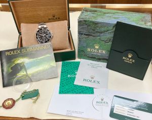 The watch comes with the original Rolex box including outer, papers dated 2004, Rolex service papers dated 2022, instructions and Submariner manual, leatherette document wallet, swing tickets and bezel cover and 2-year guarantee from ourselves.