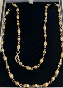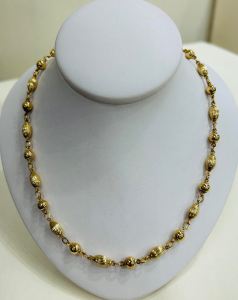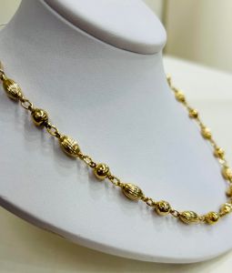 9ct yellow gold bead necklace with round and oval beads measuring 24”/610mm in length