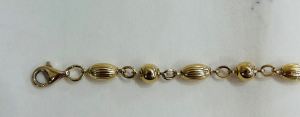 This yellow gold eye-catching necklace is made from alternate polished circular beads and ridged oval shaped beads which are joined by 9ct yellow gold jump rings to make a lovely pattern. The necklace fastens with a 9ct yellow gold trigger clasp making it safe and secure to fasten. The necklace has a matching bracelet, 24140 . The chain measures approximately 24 inches/610mm and comes displayed in one of our lovely display boxes.
