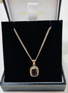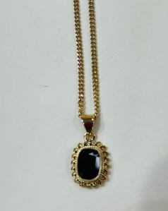 Pre-Owned 9ct Gold Garnet Pendant including 9ct Curb Chain