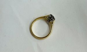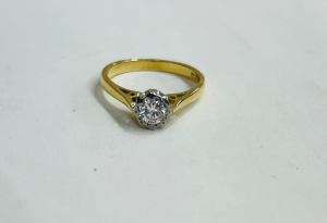 18ct yellow gold diamond solitaire ring- round brilliant cut diamond – 0.51 carats with a white gold illusion collet