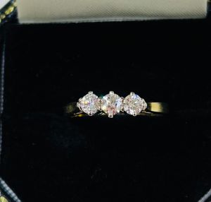 18ct yellow gold diamond trilogy ring – total diamond weight approx 0.55 carats