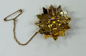Pre-Owned 15ct Victorian Era Yellow Gold Flower Design Seed Pearl Set Gold Brooch with safety chain and pendant loop