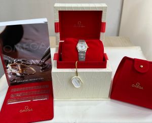 The watch comes with an Omega box, Omega suedette watch pouch, Omega instruction booklet, Omega credit card papers in a red suedette wallet from 2007, swing ticket and has a 1-year warranty from ourselves.