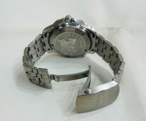 The Seamaster collection to which this watch belongs pays tribute to the maritime heritage of the Omega brand. The watch is waterproof to a depth of 300m (1000 feet), has a helium escape valve for long periods spent underwater and a revolving bezel that can only rotate anti-clockwise for reliable checking of dive and decompression times. The watch has a screw-in crown that screws directly into the case, providing reliable water resistance that a divers watch needs. The watch has a domed scratch-resistant crystal with an anti-reflective treatment on both sides, a highly durable cover over the dial. The solid link bracelet has a push button release fold over clasp which has a divers extension to the bracelet, useful when wearing over a wetsuit. This watch is classified as a chronometer, a watch whose movement has obtained an official rate certificate from the COSC (Official Swiss Chronometer Testing Institute) after having passed precision tests in different positions and at different temperatures. These tests are conducted over a 15-day period.
