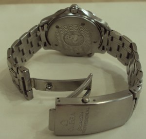 The Seamaster collection to which this watch belongs pays tribute to the maritime heritage of the Omega brand. The watch is waterproof to a depth of 300m (1000 feet), has a helium escape valve for long periods spent underwater and a revolving bezel that can only rotate anti-clockwise for reliable checking of dive and decompression times. The watch has a screw-in crown that screws directly into the case, providing reliable water resistance that a divers watch needs. The watch has a domed scratch-resistant crystal with an anti-reflective treatment, a highly durable cover over the dial. The solid link bracelet has a push button release fold over clasp which has a divers extension to the bracelet, useful when wearing over a wetsuit. This watch is classified as a chronometer, a watch whose movement has obtained an official rate certificate from the COSC (Official Swiss Chronometer Testing Institute) after having passed precision tests in different positions and at different temperatures. These tests are conducted over a 15-day period.