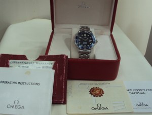 The watch comes with the original Omega box, Omega instruction booklet, Omega chronometer authenticity card, warranty card dated 2002 with an Omega leatherette document holder, original UK receipt from 2002 and has a 1-year warranty from ourselves.