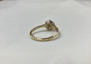 This 18ct yellow gold seven stone diamond cluster ring. The cluster has an attractive daisy design and the stones are set in a white gold setting with white split shoulders to the head of the shank. The white of the diamonds is complimented by the rich colour of the 18ct yellow gold. The head of the ring measures approximately 9mm x 8mm and the ring weighs 2.5g. UK size M 1/2, this ring can easily be resized in the workshop on our premises.